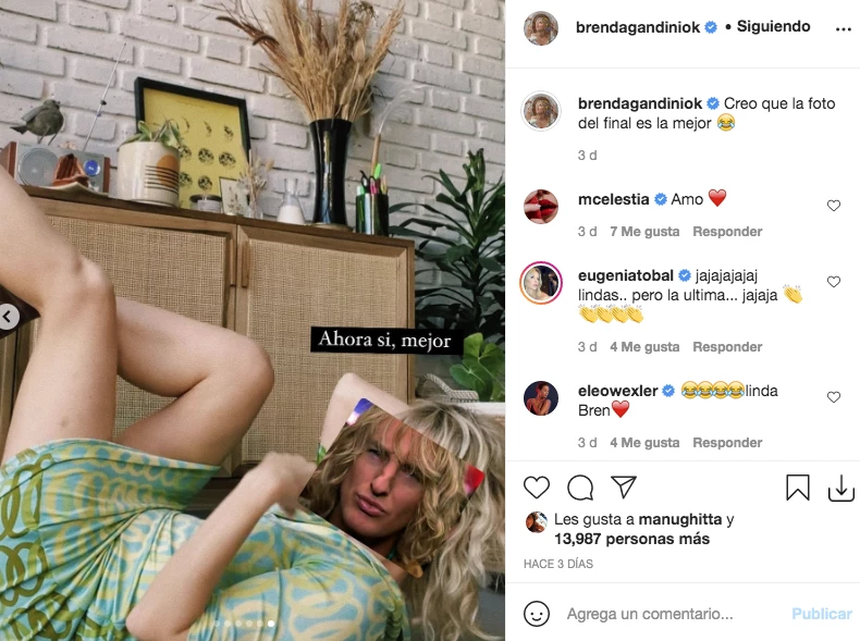 Y por el otro, posteó imágenes promocionando un canje de muebles y de zapatos en donde jugó a la “chica linda”, tanto como lo es, y bromeó con una última foto donde, con efecto digital, se cambió la cara, que fue celebrada por varias famosas amigas con sus comentarios, luego de concretarse lo que sería la ruptura de la pareja, al regreso de un viaje a Cataratas del Iguazú.
