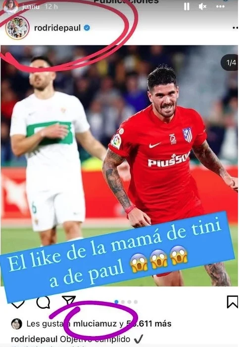 a una publicación que hizo De Paul en su Ig, Mariana le puso el afamado like que, en estos tiempos donde la virtualidad "expresa sentimientos" como las palabras, dejó al descubierto que el deportista que conquistó a Tini es aceptado en el grupo familiar.