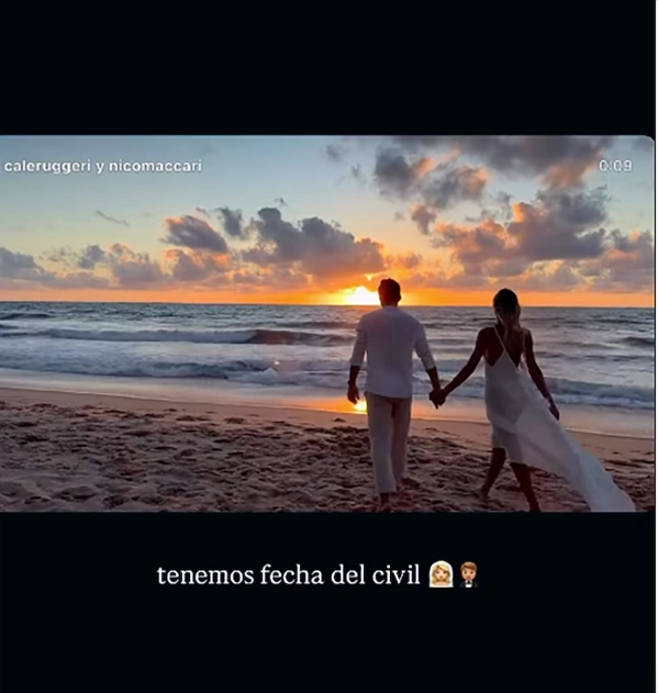 La hija del enorme Oscar Ruggeri agarró su celular y realizó el posteo emotivo, ese con el que corroboró que formalizará el lazo con su novio. Para eso, la modelo compartió un video en su feed, que se configura en una imagen muy tierna de los dos tortolitos caminando en la playa durante un atardecer.