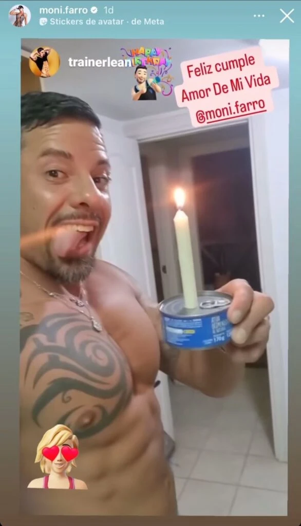 Asimismo, Mónica compartió: “Me regaló zapatillas, una mochila y todo cosas para el gimnasio”. Sin dudas, la pareja es fan del entrenamiento y por eso no solo van por ese lado a la hora de hacerse un presente sino también para representar la torta de cumpleaños.