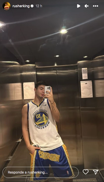 Al santiagueño se lo ve con un look súper deportivo, de camiseta de básquet y short acorde, una foto que se tomó en el reflejo de un espejo de un ascensor cerrado. Y dado que en los últimos días, tras enterarse que la China había estado en una conocida fiesta, también envío indirectas por las redes, esta parece ser una seguidilla de su accionar.