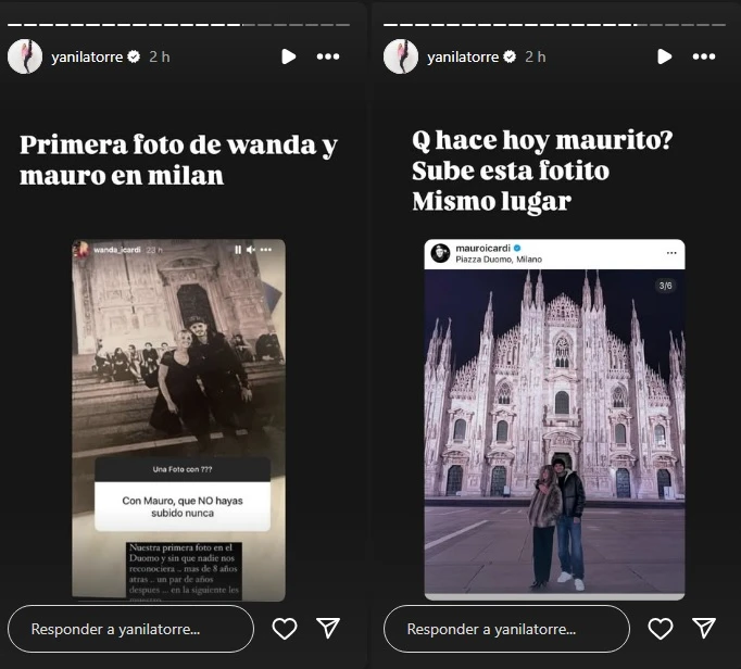 Mostrando justamente una imagen del futbolista con Wanda hace unos años, la angelita escribió: “Primera foto de Wanda y Mauro en Milán”. En esa imagen, la mediática -que en ese entonces tenía su usuario de Instagram como @Wanda_icardi- había escrito: “Nuestra primera foto en el Duomo y sin que nadie nos reconociera. Más de 8 años atrás…”.