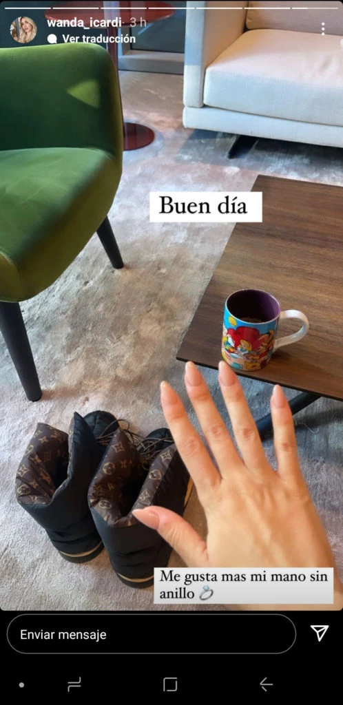 Pero Wanda parece pensar distinto al goleador. Lo dejó claro otra vez en sus historias de Instagram, cuando posteó una foto de su mano completamente limpia y desprovista de accesorios. Es decir, sin anillo, sin el anillo que compartía con Icardi y que lucía orgullosa y feliz hasta el fin de semana. No sólo eso: también puso "Me gusta más mi mano sin anillo". Tremendo. Contundente. Más claro, imposible.