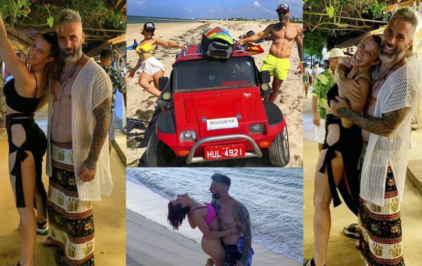 Autos areneros lanzados a gran velocidad, viajes por el aire que terminan en el agua, almuerzos en sillas que están adentro del mar o deslizamientos sobre la arena en impresionantes pendientes playeras son apenas algunas de las "aventuras de alto volataje" a los que la actriz y el empresario se entregan bajo el sol. Y todo complementado con extravagantes looks que despiertan miradas por todos lados.