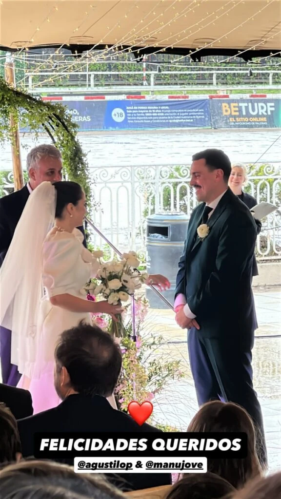 El conductor de Cuestión de peso también compartió en sus redes la felicidad de haber acompañado a sus colegas de TN en ese momento tan especial: “Hoy me tocó casarlos. Manu y Agus me eligieron como maestro de ceremonia de la boda en el @hipodromopalermo.ok. Hace mucho que no veo tanto amor en una pareja. Sean felices!!!”.