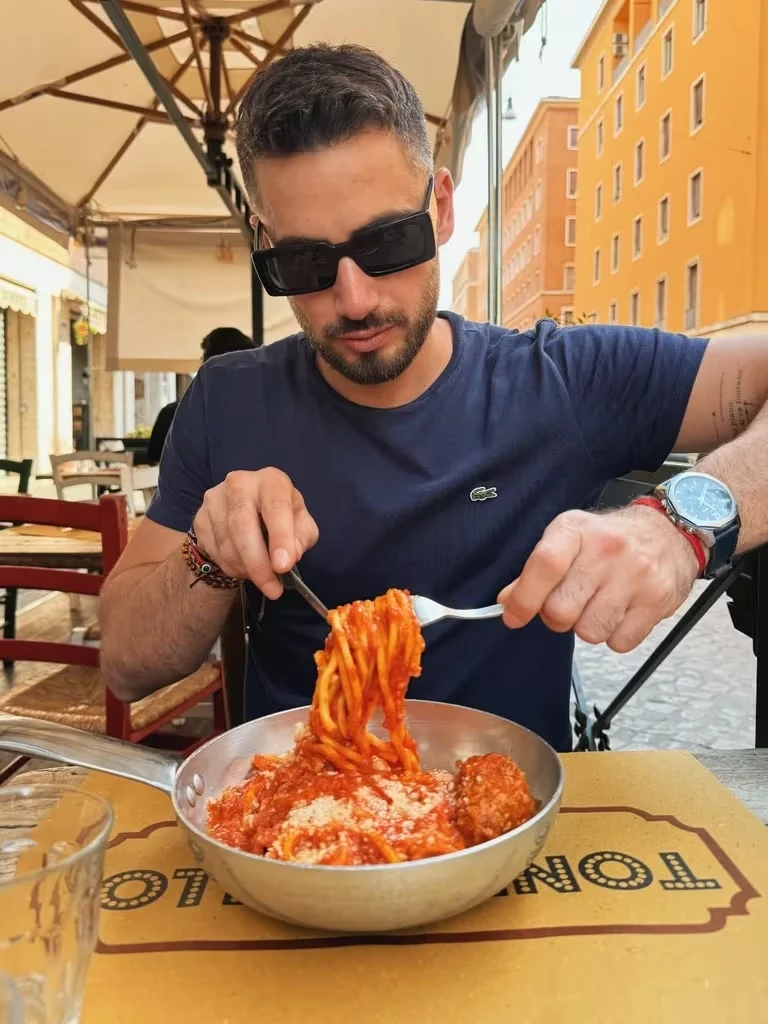 Por otro lado, Nico también compartió varios momentos de su viaje a través de las redes. Una de las publicaciones se mostró paseando por una calle romana, también frente a un local de espaguetis y pizzería. Al igual que novia, también lució su look para la ocasión, eligiendo una remera azul y un short gris, sin olvidarse de los anteojos de sol y una mochila para recorrer.