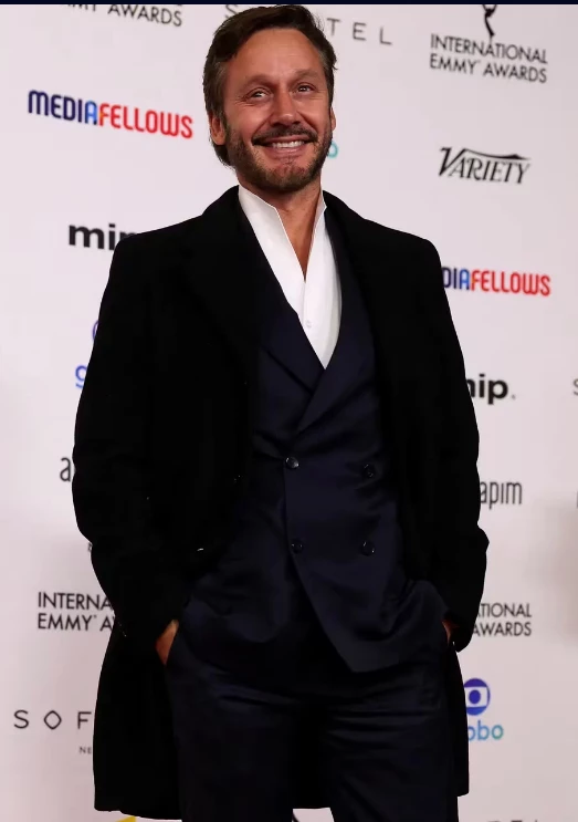 Vicuña fue convocado para hacer entrega de una estatuilla y apostó al estilo clásico, aquel que suele imponer cada vez que se presenta en un evento de similares características en la industria local. El chileno eligió un ambo azul satinado. Combinó con camisa blanca de cuello moderno, abrigo negro y zapatos acordonados.