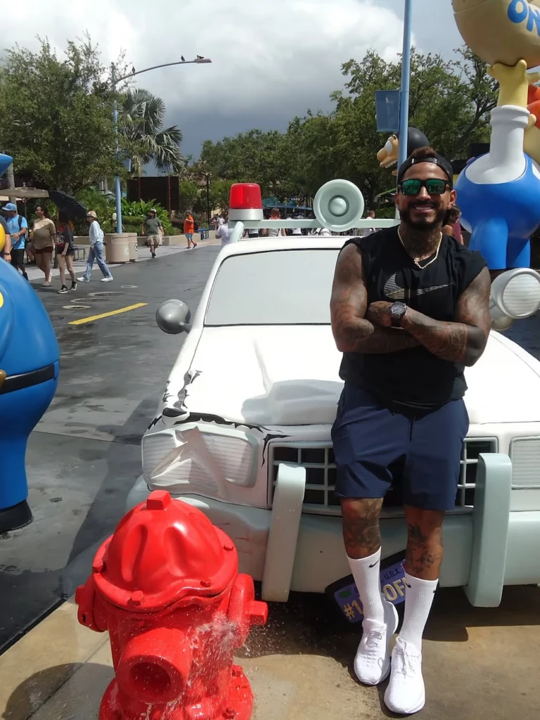 El músico, cuyo nombre real es Maximiliano Appap, se mostró feliz de acompañarla en este viaje, entre mates con 30 grados y caminatas por las playas de Florida. Pero no todo fue sol y mar: también hubo paseos por parques temáticos como Universal Studios, donde visitaron la zona dedicada a Los Simpson y posaron con la icónica dona gigante.