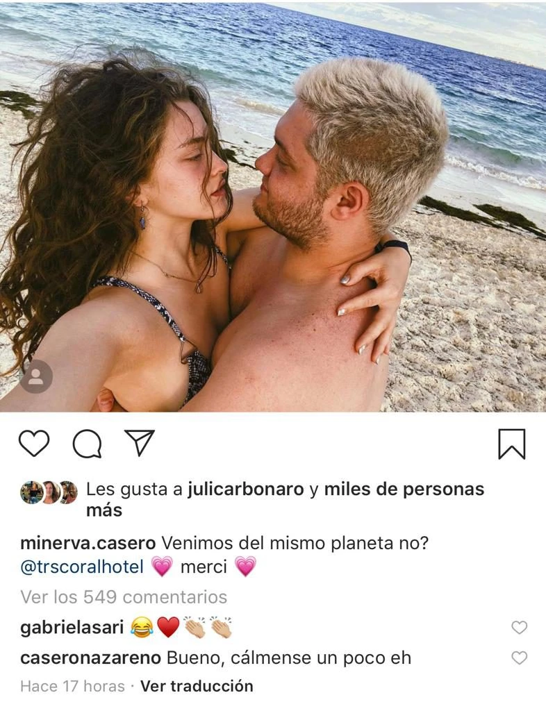Pronto, la foto recibió miles de likes, y así también comentarios de los fanáticos de la pareja, y hasta los hermanos de cada uno. Flor Torrente, escribio. "Paaaar favor", mientras que Nazareno Casero se mostró "más celoso" y dejó ver su costado de hermano cuida. "Bueno, calmense un poco, eh".