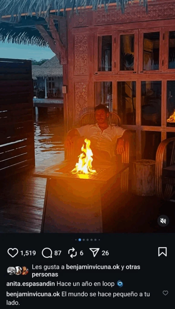 La publicación de Espasandín no solo llamó la atención por las imágenes, sino también por la reacción de Vicuña. El actor comentó: “El mundo se hace pequeño a tu lado”. El gesto funcionó como un guiño público que reforzó el mensaje romántico.