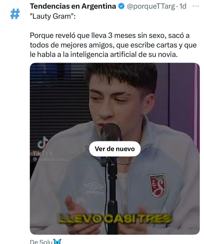 Si bien Lauty Gram era un músico conocido para muchos de su generación, su salto a la popularidad se dio al tener un fugaz affaire con la China Suárez. Pero a pesar de no prosperar el vínculo con la actriz, el joven de 24 años volvió a apostar al amor y estar nuevamente en la mira de todos.