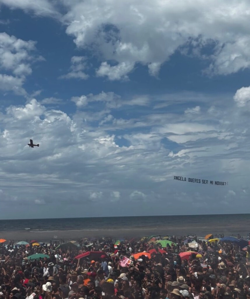 Sin embargo, en las últimas horas, una imagen lo cambió todo. Luego del episodio que se volvió viral en Pinamar —cuando una avioneta sobrevoló la playa con un mensaje romántico en pleno vivo de Nadie Dice Nada—, Ángela Torres decidió dar un paso más y compartir su felicidad en redes sociales.