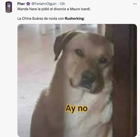Pero la noticia del divorcio de Wanda y Mauro provocó el estallido de las redes sociales. Mayoritariamente para decir dos cosas: una, que la China dejaría a su "bebé" para lograr finalmente su cometido. Y la otra, el lamento de Rusher al enterarse de la noticia, que no lo involucra de manera directa pero le puede pegar de lleno. ¡Hasta el presidente Alberto Fernández la ligó! Y bue... Al mal tiempo, buena cara.