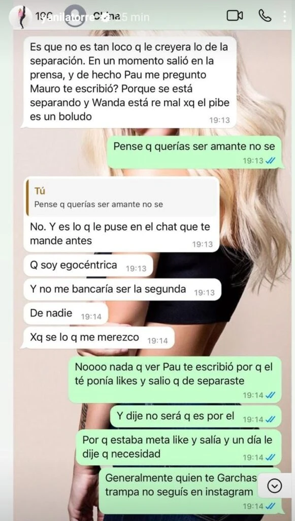 Así las cosas, luego de cortar su comunicación con LAM, Latorre cumplió lo prometido y empezó a filtrar todos los chats que tiene entre Wanda y la China, cuando la actriz le escribió para contarle de la escandalosa infidelidad de Icardi. ¡Bombazo!
