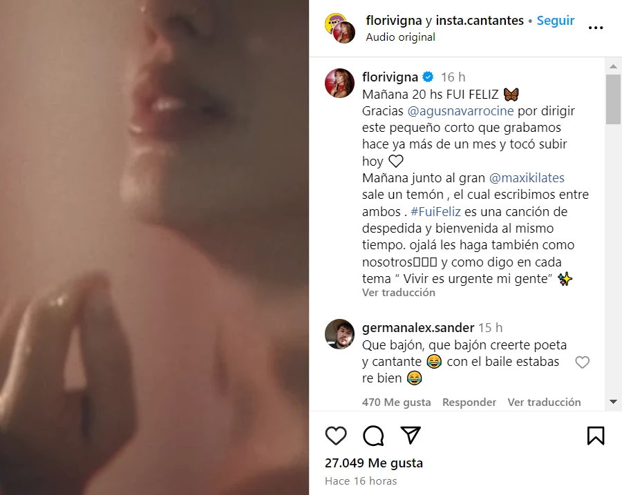 “A veces es necesario ponerle un punto final a lo conocido para que empiece el descubrir lo nuevo, eso que también nos merecemos”, avanza Flor en el video que en unas horas sumó miles de visualizaciones y likes tras la confirmación de la nueva relación de Castro y Siciliani.