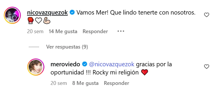 Como sea, basta con mirar las publicaciones de Mercedes para encontrarse con el comentario de Nico en cada una de ellas. Siempre mensajitos relacionados con la obra en la que comparten elenco, todos con muchos corazones rojos, entusiasmo y un evidente cariño que, dicen, iría más allá.