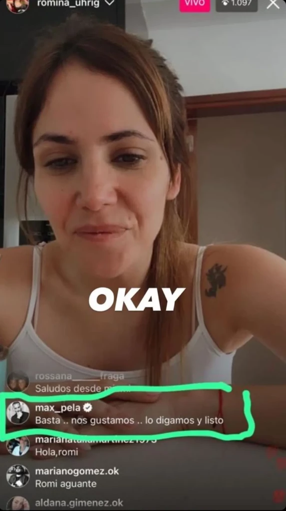 Pese a que ella lo negó y se mostró algo sorprendida, esta vez la encontraron en medio de una situación muy extraña. Mientras Romina hacía un vivo de Instagram, Maxi invadió en los comentarios con declaraciones de amor inesperadas.