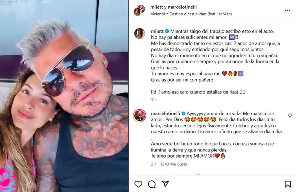 Desde hace semanas se decía que Marcelo Tinelli y Milett Figueroa estaban separados, pero ella salió a desmentirlo. En el Día de los Enamorados, la modelo publicó un video con recuerdos de la pareja y un mensaje lleno de amor para el conductor.