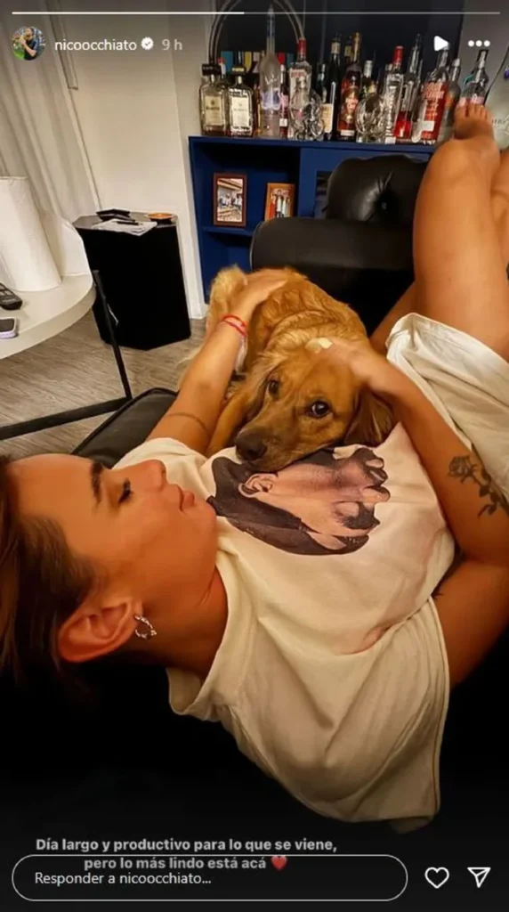La famosa lanzó: "Para los que me preguntan por Nico, está todo espectacular. Yo lo invité a que venga, pero ya era muy tarde y se levanta muy temprano para ir a Luzu. Y era un chino porque también tenía que venir el perro. Bueno, una larga historia. Entonces dijimos ‘basta’. Que él duerma allá y yo acá".