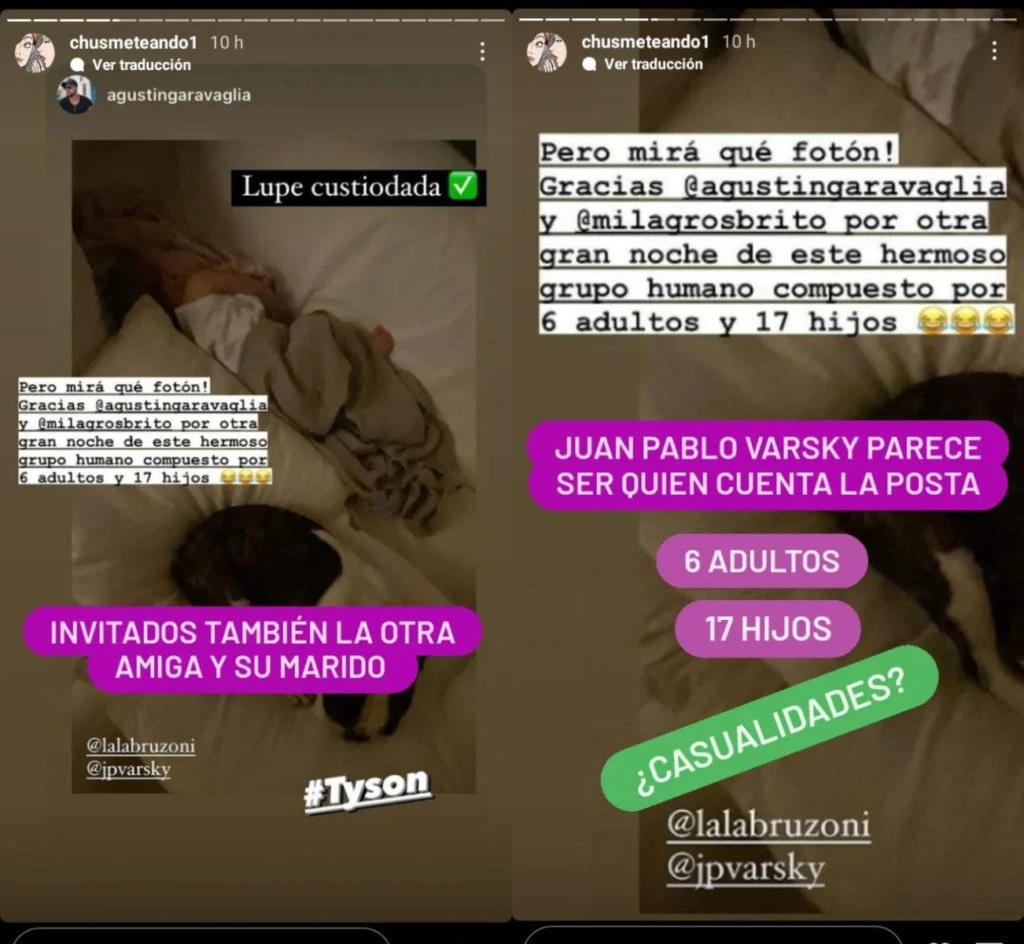Tal como menciona Varsky, los 6 adultos eran Brito y su marido (Agustín Garavaglia), Varsky y su esposa (Lala Bruzzoni), Romina Pigretti y su nueva pareja Benjamín Vicuña. Todo indica que el actor aprovechó la reunión para que sus hijos conozcan a su nuevo amor y que él también pudiera conocer a los niños de ella.