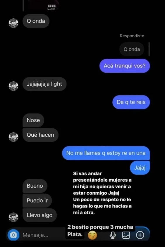 Y al posteo le sumó un duro descargo donde justificó el motivo por el que no aceptó verse, de madrugada, con L-Gante. “Si vas andar presentándole mujeres a mi hija no quieras venir a estar conmigo jajaja. Un poco de respeto, no le hagas lo que me hacías a mí con otra. Te mando dos besitos, porque tres son mucha plata”, le reprochó.