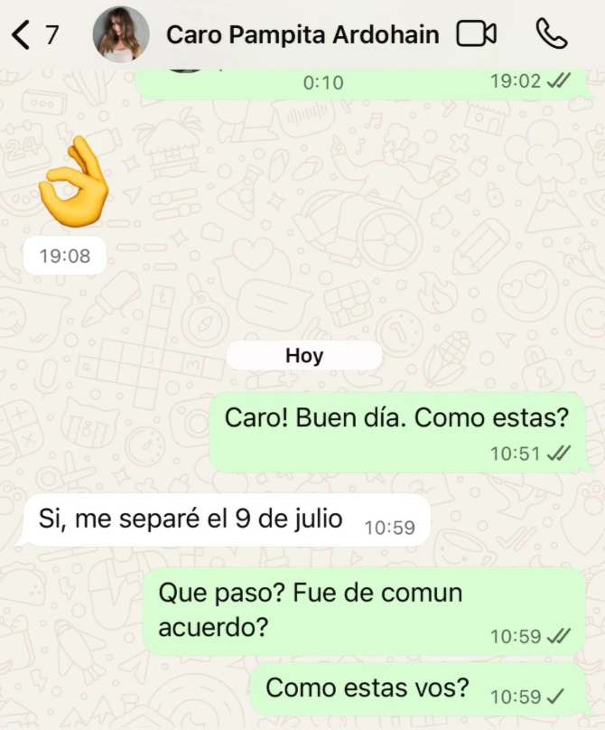 Fue en Bondi Live, donde Pepe Ochoa mostró la conversación privada que mantuvieron por WhatsApp luego de la divulgación de la noticia en el ciclo de El Trece, donde apuntaron a la distancia como el principal factor que llevó a la ruptura. Decisión que, aseguran, fue de Pepa, quien ya estaría llevando “vida de soltero”.