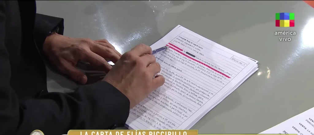 En el ciclo de América, Rodrigo Lussich mostró ese documento y leyó los fragmentos más sustanciales. Así, Piccirillo se defendió de todo proceso: “Padre de una hermosa hija, hijo, hermano y amigo. Inocente. Hoy detenido arbitraria e ilegalmente en la unidad carcelaria de Ezeiza".