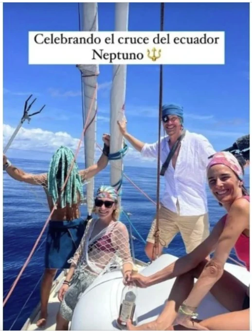 Evidentemente late una tradición entre aquellos que navegan por las profundidades y que Juana optó por comunicar. Todo se relaciona con la mitología de Neptuno, el protector de los mares. Con una foto sonriente al lado de su pareja, la famosa escribió: “Tradiciones de alta mar, Neptuno y el Ecuador (quiero cruzarlo siempre)”.
