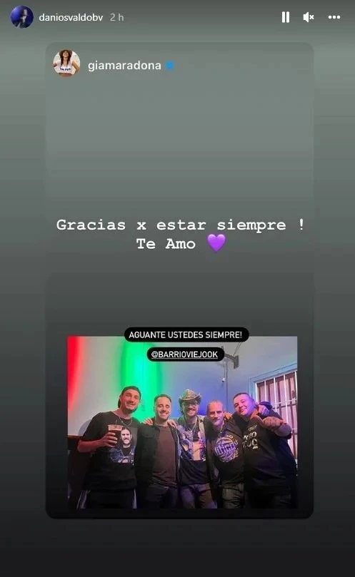 Con una foto de Daniel Osvaldo y su banda después de un show que dieron en Córdoba, Gianinna decidió hacer pública su reconciliación con una frase de apoyo eterno: "Aguante ustedes siempre!". Enamoradísimo, el ex Boca reposteó la storie y retrucó: "Gracias por estar siempre. Te amo".