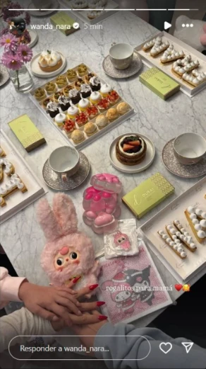 “Regalitos para mamá”, escribió Wanda en una foto que compartió a través de sus historias de Instagram, junto a un emoji de un corazón rojo y una carita enamorada. En la postal, la conductora de Telefe mostró una serie de accesorios que las pequeñas le obsequiaron.
