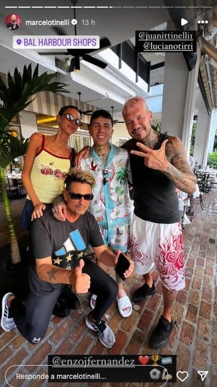 A 48 horas de haber ganado el título, algunos integrantes del plantel argentino decidieron tomarse un descanso aprovechando que estaban por Miami y se quedaron con sus familias. Enzo Fernández se quedó cerca de las playas y junto a Valentina Cervantes, su pareja.