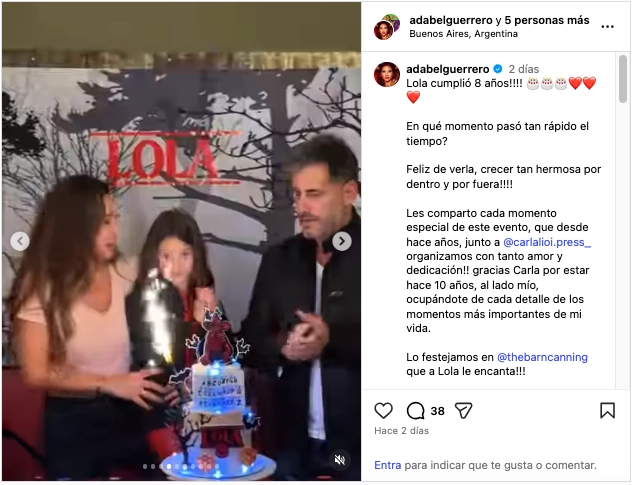 En sus redes, Adabel abrió su corazón y dejó ver ese costado más íntimo que la define como madre. “Lola cumplió 8 años. ¿En qué momento pasó tan rápido el tiempo?”, escribió. También destacó con orgullo el presente de su hija, describiéndola como “hermosa por dentro y por fuera”. Y aprovechó para agradecer a todos los que la acompañan.