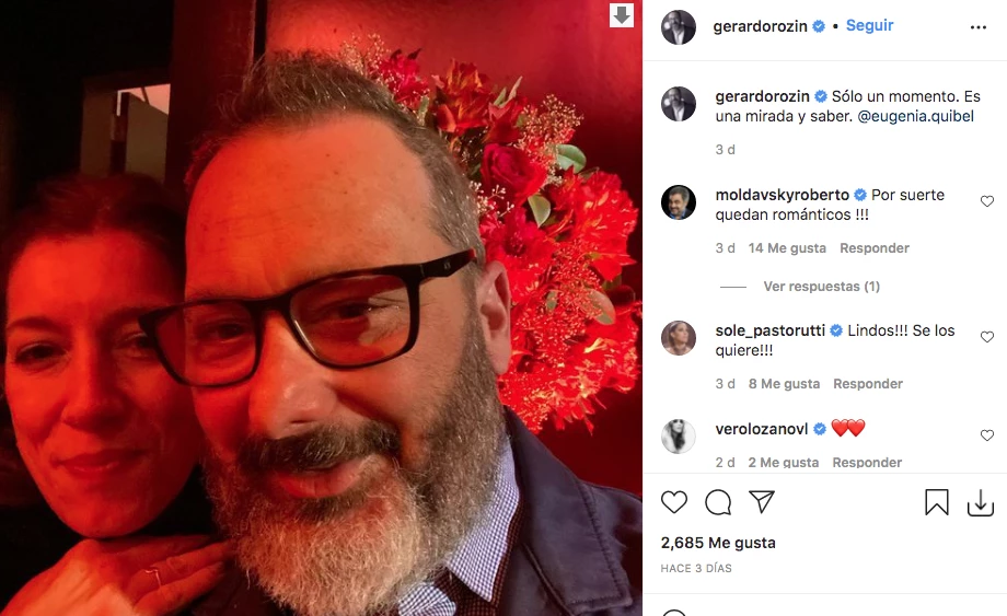 Y, en su cuenta oficial de Instagram, Rozín compartió una tierna postal con quien hoy se ganó su corazón y para quien el ocupa un lugar mas que importante, hace poco más de un año. “Solo un momento. Una mirada y saber…”, escribió el conductor, parafraseando la letra de una de las canciones de Vicentico, y dejando al descubierto su presente sentimental.