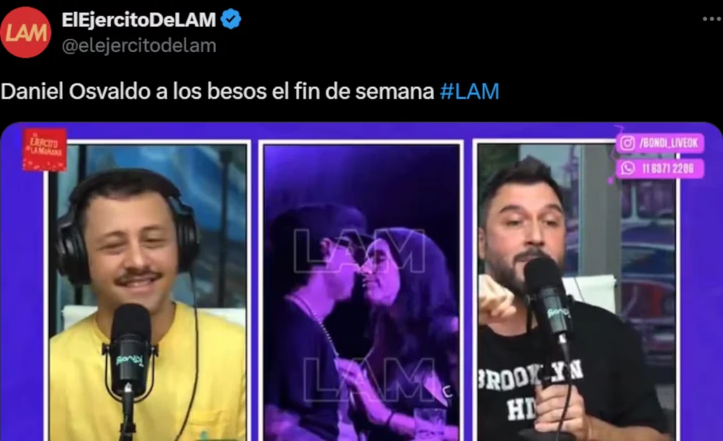 En la foto que publicaron en la cuenta de El Ejército de LAM, se los vio muy cerquita, juntos y a los besos. Si bien puede tratarse de un simple affaire de la noche, no está descartado que sea un romance y estén atravesando sus primeros días.