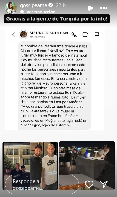 Porque mientras la mediática muestra desde Miami los chats que se manda con su entrenador o presume de los regalos que le hacen sus fans, Icardi empezó a tener salidas de soltero en la noche turca para darle celos a su ex. Así lo hizo en esos días, al pavonearse en sus historias de su cena romántica en una terraza de restaurante.