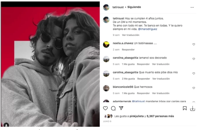 Además, Roust se destaca en las redes sociales, merced a sus conocimientos en ese universo, donde posee más de cien mil seguidores en su cuenta de Instagram. En junio de este año, Imanol anunció la convivencia con Taty y posteó: “Nos vamos a vivir juntos con la señora Tatiana a un departamento que conseguimos... Sin anillo, eso es un montón. Vamos a ver que onda con la convivencia". Lamentablemente, algo no habría funcionado en la cotidianidad.