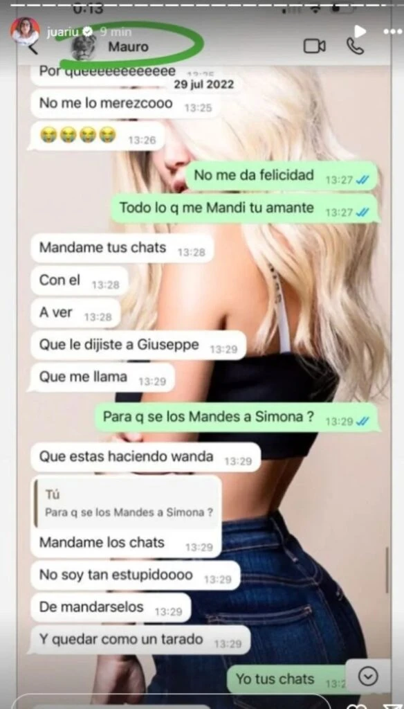 Indignada por quedar expuesta de esa forma, donde se la ve con un colega de Icardi que juega en Europa llamado Keita Baldé en su casa de Italia, la empresaria mediática le habría facilitado a Juariu otras capturas de conversaciones de WhatsApp con Mauro para limpiar su imagen y asegurar que ella lo engañó después y, tal vez, por venganza.