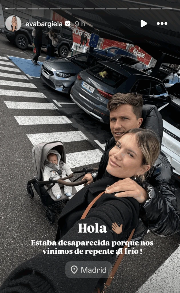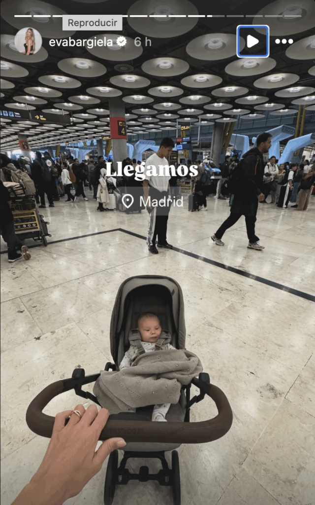 La llegada a Madrid quedó registrada en imágenes y videos que rápidamente enternecieron a sus seguidores. Faustino, abrigado en su cochecito, se convirtió en el protagonista absoluto del aeropuerto de Barajas. “Llegamos”, escribió Eva, dando inicio a una seguidilla de posteos que narraron en tiempo real cada paso del viaje.