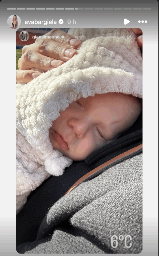 Ya instalados en la capital española, Eva, Gianluca y su hijo también visitaron el estadio del Atlético de Madrid, donde el Cholo Simeone es una figura emblemática. Allí, Faustino acompañó a sus padres a un entrenamiento, bien abrigado y protegido del frío, en una postal que simbolizó el cruce entre familia, fútbol y generaciones.