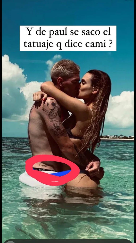 En la imagen se puede observar nítidamente el tatuaje que le había dedicado. Pero cotejando aquellas fotos con las actuales, las del partido, queda claro que en la cintura del futbolista ya no se observa su nombre. En cuestión de segundos, la pregunta que se hicieron muchos e invadió las redes fue "¿Lo obligó Tini?" pues se ha dicho varias veces que ella es muy celosa.