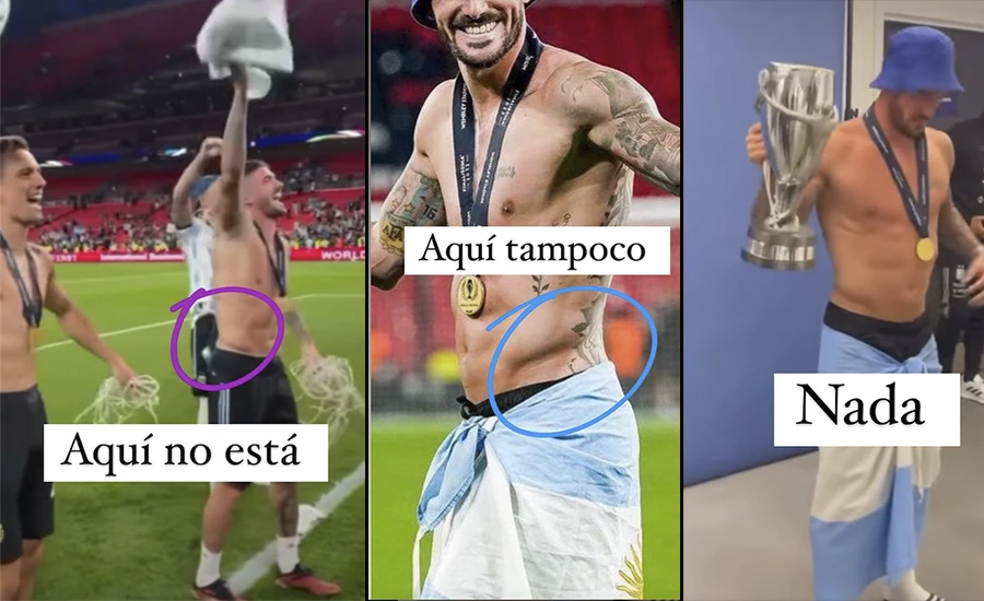 Las cámaras de televisión y las redes sociales, además, fueron acercando más imágenes de De Paul. En todas se lo veía celebrando, tanto adentro del campo de juego como en los vestuaros, con el torso desnudo. En las manos podía tener la copa "Finalissima" que habían conquistado un rato antes o una bandera que se colocó por encima del pantalón, pero de la cintura para arriba no se le veía nada.
