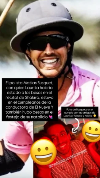 Según la información que maneja Méndez, se confirmó que el polista Matías Bouquet es el nuevo hombre que conquistó a Laurita. Estuvo presente no solo en la fiesta de cumpleaños de la actriz, sino que además la cercanía entre ambos es más que evidente. “Estuvo en el cumpleaños de la conductora de El Nueve y tambien hubo besos en el festejo del natalicio”, comentó en sus redes.