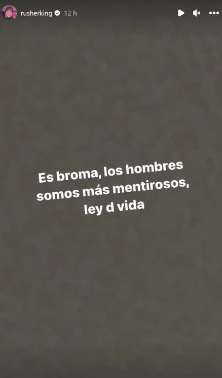 Pero en las últimas horas, Rusherking admitió que no es ningún santo y que más de una vez apela a la mentira en sus relaciones amorosas. Sincericidio que deslizó luego de compartir en sus historias de Instagram un cartel de neón que decía “todas mienten”.