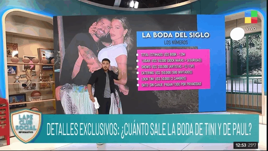 Ahora emergieron novedades jugosas, que se vinculan con la inversión impresionante que llevarán a cabo los novios para semejante evento. Las cifras se transmitieron en Lape Social Club, donde el panelista Martín Salwe detalló todos los rubros que implicarán números fortísimos.