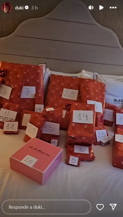 Es tanto el amor que se tienen y el que tiene Emilia por él que lo sorprendió en su día de cumpleaños (cumple 28 años) y le hizo 28 regalos diferentes para celebrar su día. "Una que no se decidía que regalar", expresó Duki en el comienzo del clip que subió a sus historias.