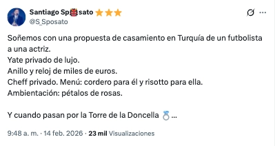 De acuerdo a lo que explicó en su cuenta de X, Mauro invitaría a su novia a un paseo en yate con chef privado incluido, en una de las postales más románticas de Estambul. “Hoy Icardi le va a pedir casamiento a la China cuando pasen por el Maiden’s Tower”, escribió el periodista en referencia a uno de los lugares más emblemáticos de la ciudad.