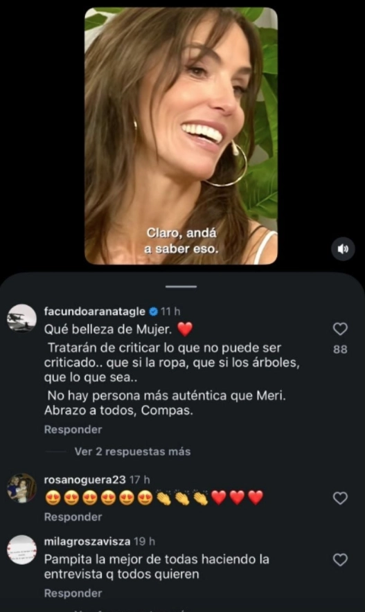 “Qué belleza de mujer. Tratarán de criticar lo que no puede ser criticado… que si la ropa, que si los árboles, que lo que sea”, comenzó escribiendo Facundo a modo de admiración a Susini. Pero hubo más, dejando en claro que no hay motivos para meterse con su ex: “No hay persona más auténtica que Meri. Abrazo a todos compas”.