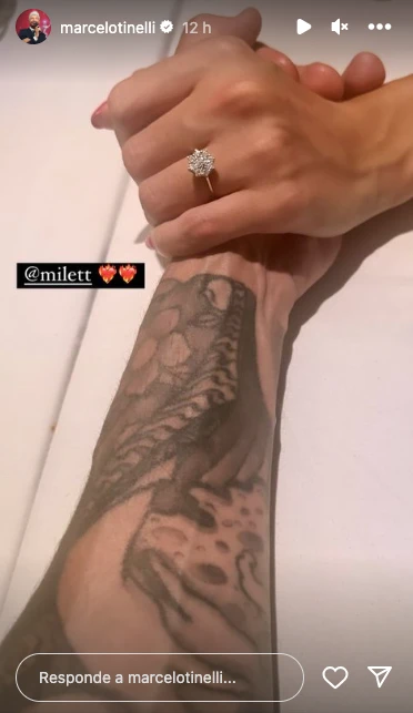 Y en la imagen se visualiza, en primer plano, un llamativo anillo de brillantes en el dedo anular de Figueroa, imagen que Marcelo decidió completar con el emoji de dos corazones que despiden llamaradas de fuego. ¿El anuncio oficial será después de la boda de su hija Candelaria y Coti Sorokin?