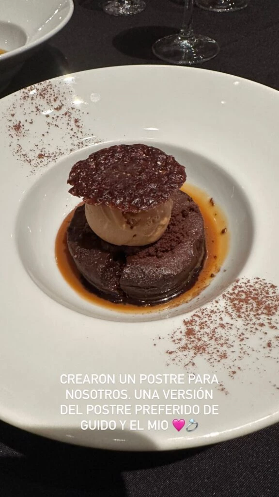 “Crearon un postre para nosotros. Una versión del postre preferido de Guido y el mío”, fue uno de los adelantos que reveló Sol, al publicar una foto de la exquisita creación que los invitados podrán degustar.