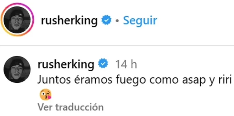 “Juntos éramos fuego como ASAP y Riri...”, es la sugestiva frase de Rusher, que hace referencia al apasionado romance de Rihanna y ASAP Rocky. ¿Qué dirá la China sobre este sincericidio de su ex? ¿Se vendrá la respuesta de la actriz?